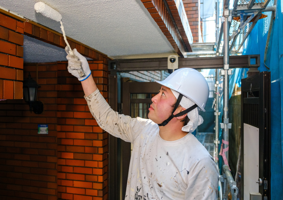 最終の仕上げ塗りを行います。共用部分の美観や耐候性を考慮し、細部まで丁寧に仕上げます。